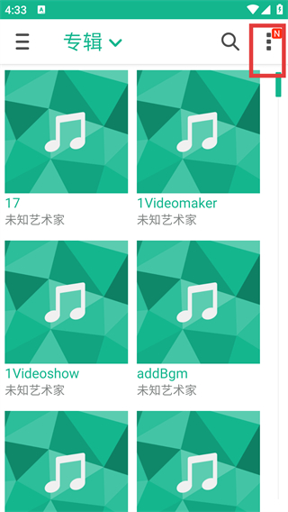 1、在音樂應用的專輯頁面,點擊右上角的菜單按鈕,展開包含多個操作選項的菜單列表。