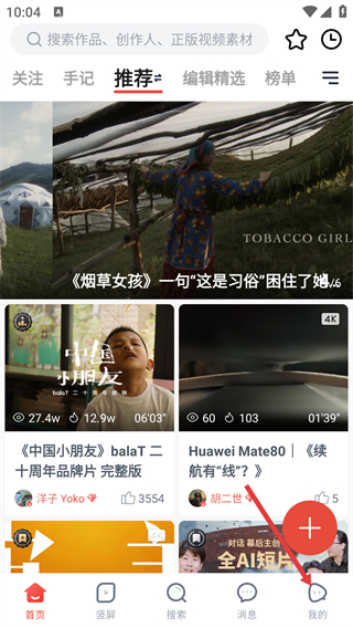 2、進(jìn)入新片場(chǎng)首頁后,點(diǎn)擊底部導(dǎo)航欄的【我的】選項(xiàng),進(jìn)入個(gè)人中心頁面。