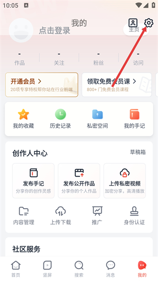 3、在“我的”頁面,點(diǎn)擊右上角的設(shè)置圖標(biāo),進(jìn)入應(yīng)用的設(shè)置配置頁面。