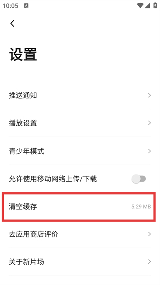 4、進(jìn)入設(shè)置頁面后,找到【清空緩存】選項(xiàng),點(diǎn)擊該選項(xiàng)可完成應(yīng)用緩存的清理操作。