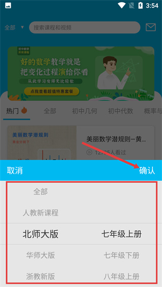 2、在教材選擇彈窗中,選定目標(biāo)教材版本后,點(diǎn)擊“確認(rèn)”按鈕,完成學(xué)習(xí)內(nèi)容版本的切換。
