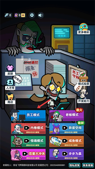 1、選擇老板模式進(jìn)入,之后可以看到界面里的員工列表、裝扮等功能入口,按需點擊相關(guān)選項來開啟游戲流程。