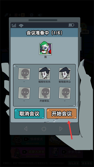 2、進(jìn)入會議準(zhǔn)備環(huán)節(jié),確認(rèn)參與會議的人員,待人員選擇完成后,點擊開始會議按鈕,即可進(jìn)入會議相關(guān)的游戲環(huán)節(jié)。