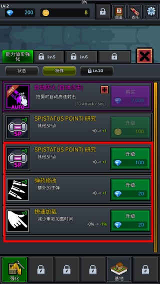 4、消耗資源研究【自動(dòng)射擊-自動(dòng)攻擊】【SPSTATUSPOINT-研究】等技能,解鎖自動(dòng)功能簡(jiǎn)化操作提升效率。
