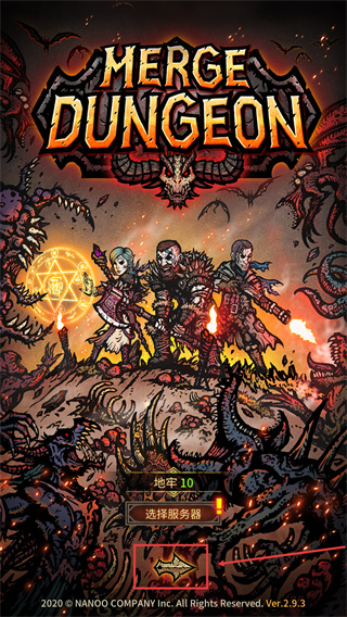 1、在【MERGE-DUNGEON】界面點(diǎn)擊箭頭按鈕,先選擇服務(wù)器,進(jìn)入游戲開啟冒險(xiǎn)。