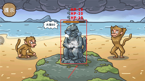 2、面對(duì)石像類目標(biāo)時(shí),通過(guò)攻擊削減其【HP】,注意每次攻擊的傷害數(shù)值(如大錘80),規(guī)劃攻擊節(jié)奏。