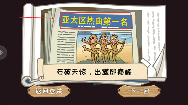 4、通關(guān)后可查看劇情結(jié)算界面,點(diǎn)擊【下一回】進(jìn)入后續(xù)關(guān)卡,繼續(xù)體驗(yàn)以西游為背景的趣味劇情。