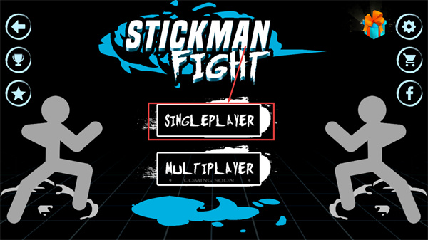 1、進(jìn)入【STICKMAN-FIGHT】后,選擇【SINGLEPLAYER】模式開啟單人對戰(zhàn),該模式為當(dāng)前可體驗(yàn)的核心玩法。