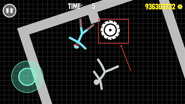 2、戰(zhàn)斗中通過左側(cè)操控區(qū)域控制火柴人移動,靈活調(diào)整位置同時(shí)尋找進(jìn)攻時(shí)機(jī)。